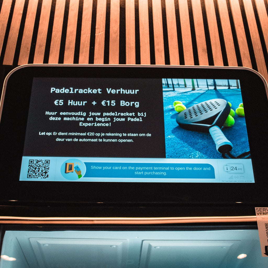Met Vending4Padel biedt u spelers directe en constante toegang tot belangrijke padelartikelen. De automaat ondersteunt de verhuur van rackets en de verkoop van ballen, grips, dranken en snacks. Alles werkt volledig automatisch en is 24 uur per dag beschikbaar. Hiermee verhoogt u het gebruiksgemak voor spelers en voorkomt u dat zij afhaken omdat materialen ontbreken. Vending4Padel versterkt de service op uw padellocatie en draagt bij aan een professionelere uitstraling, iets waar zowel clubs als recreatieparken duidelijk op worden beoordeeld.
